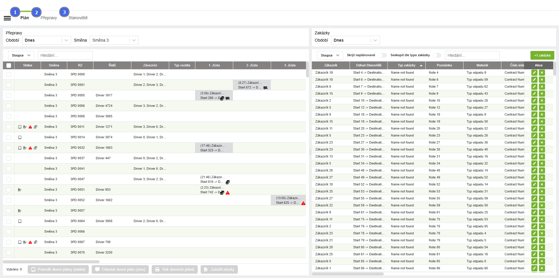 2Přehled, editace, hromadné plánování a odesílání k fakturaciViz záložka Přepravy