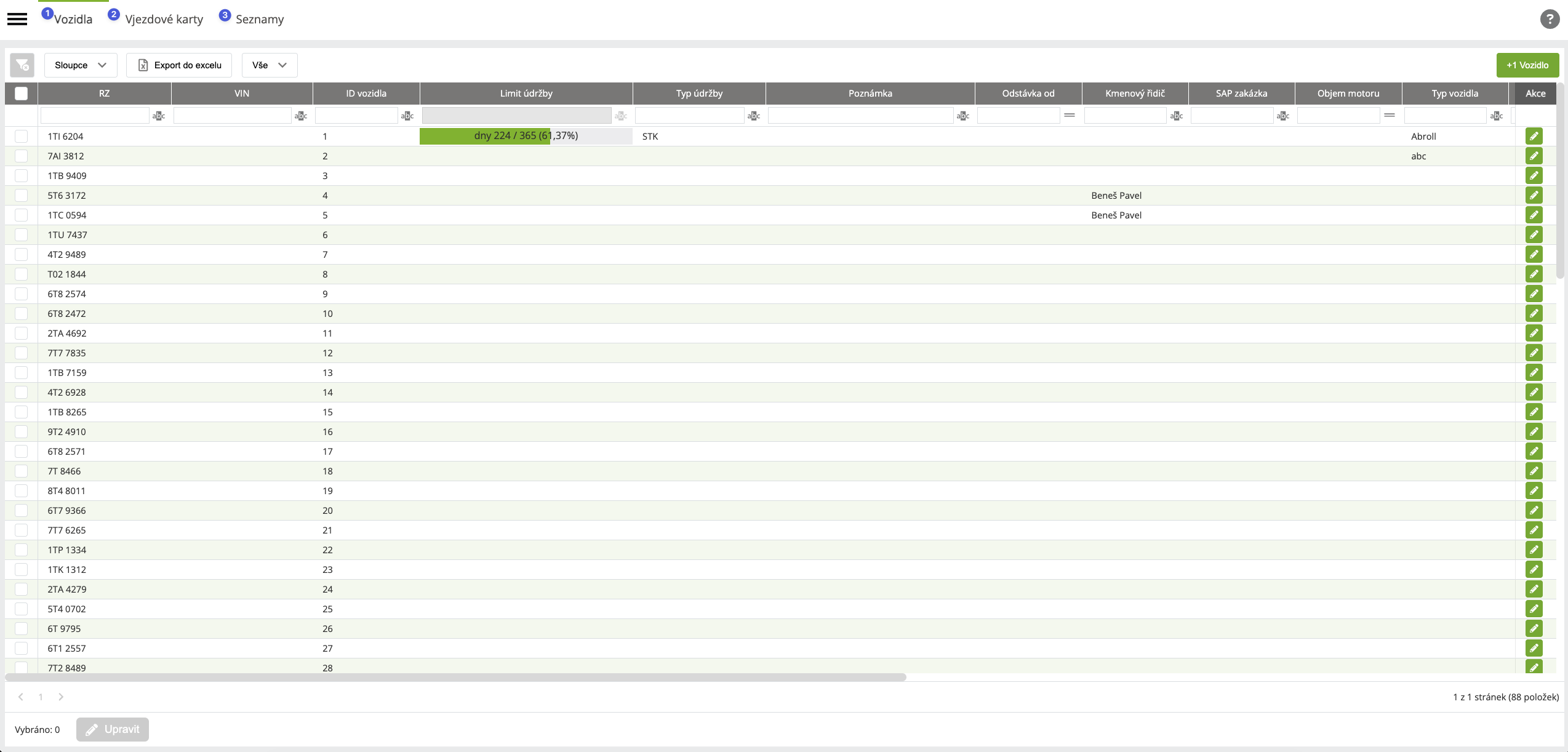 1Přehled, tvorba a editace vozidelviz Vozidla