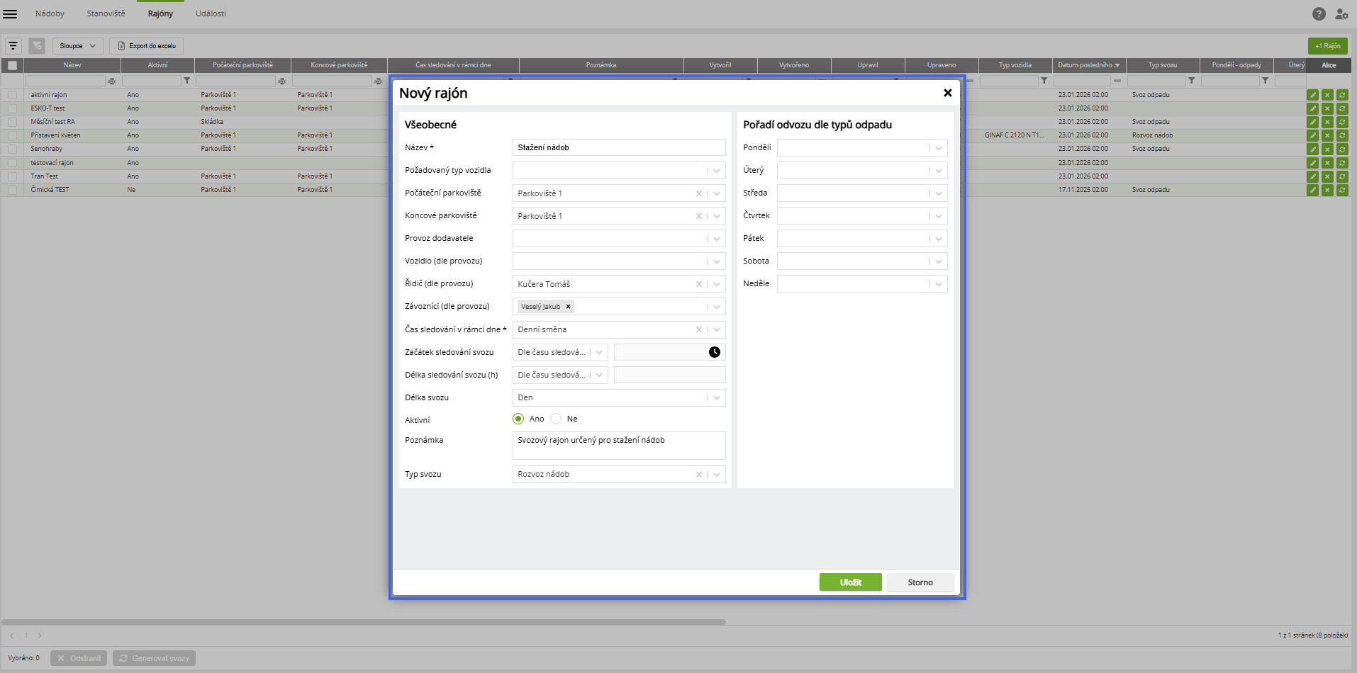 Vytvoření rajonu (svozu) pro stažení nádoby