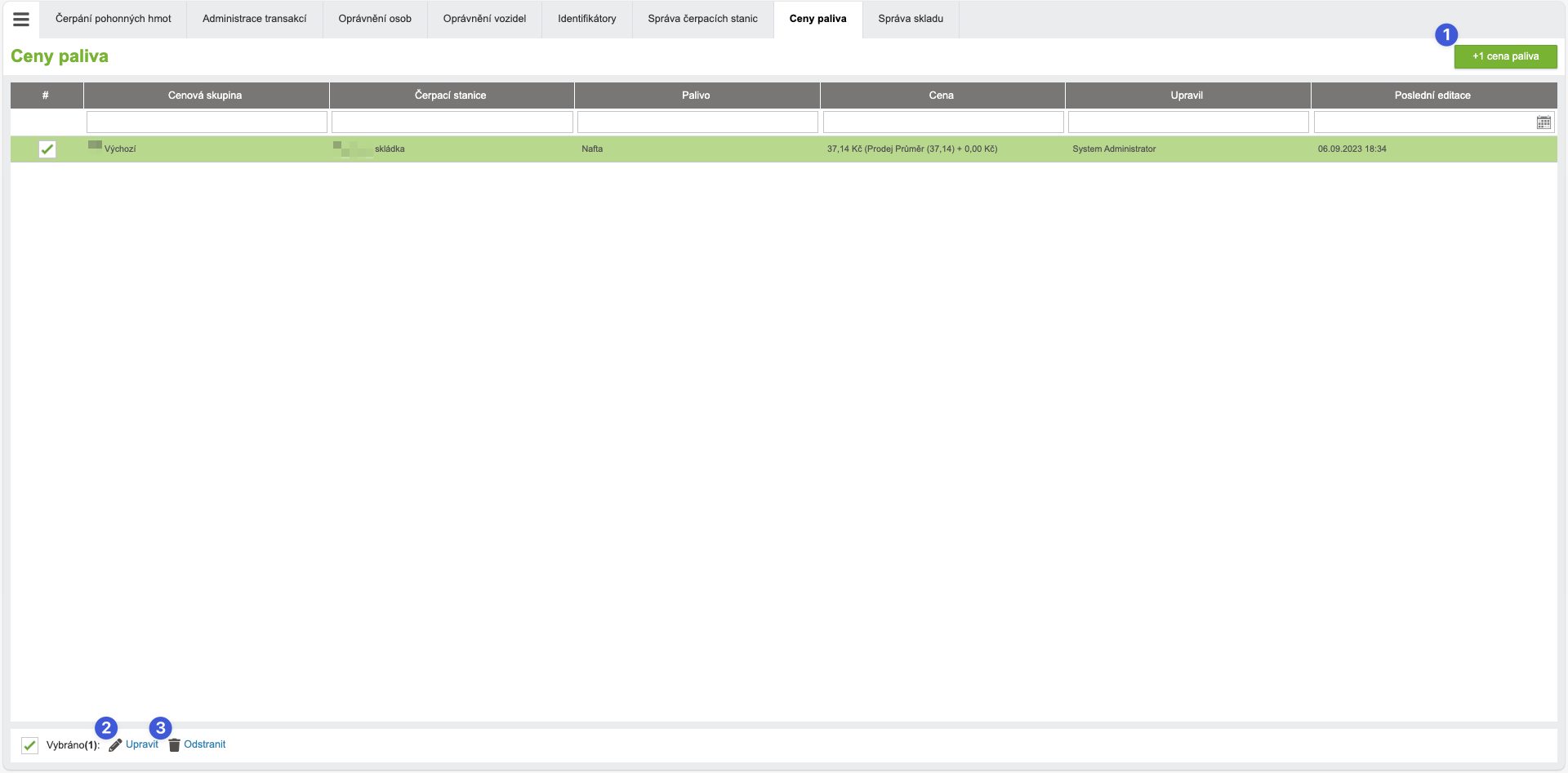 | 3 | Odstranit | Odstranění ceny paliva ze seznamu. |