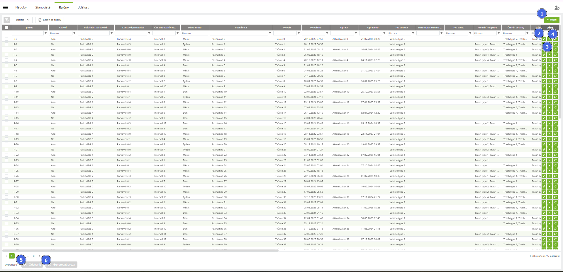 | 5 | Hromadné odstranění | Umožňuje odstranit více zvolených rajónů. |