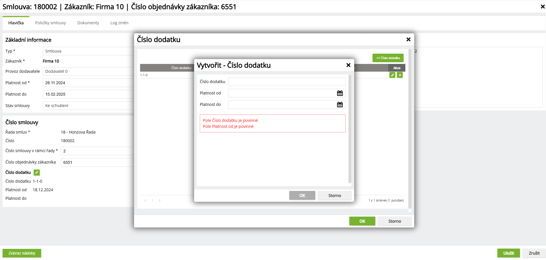 Přidání nebo úprava smlouvy