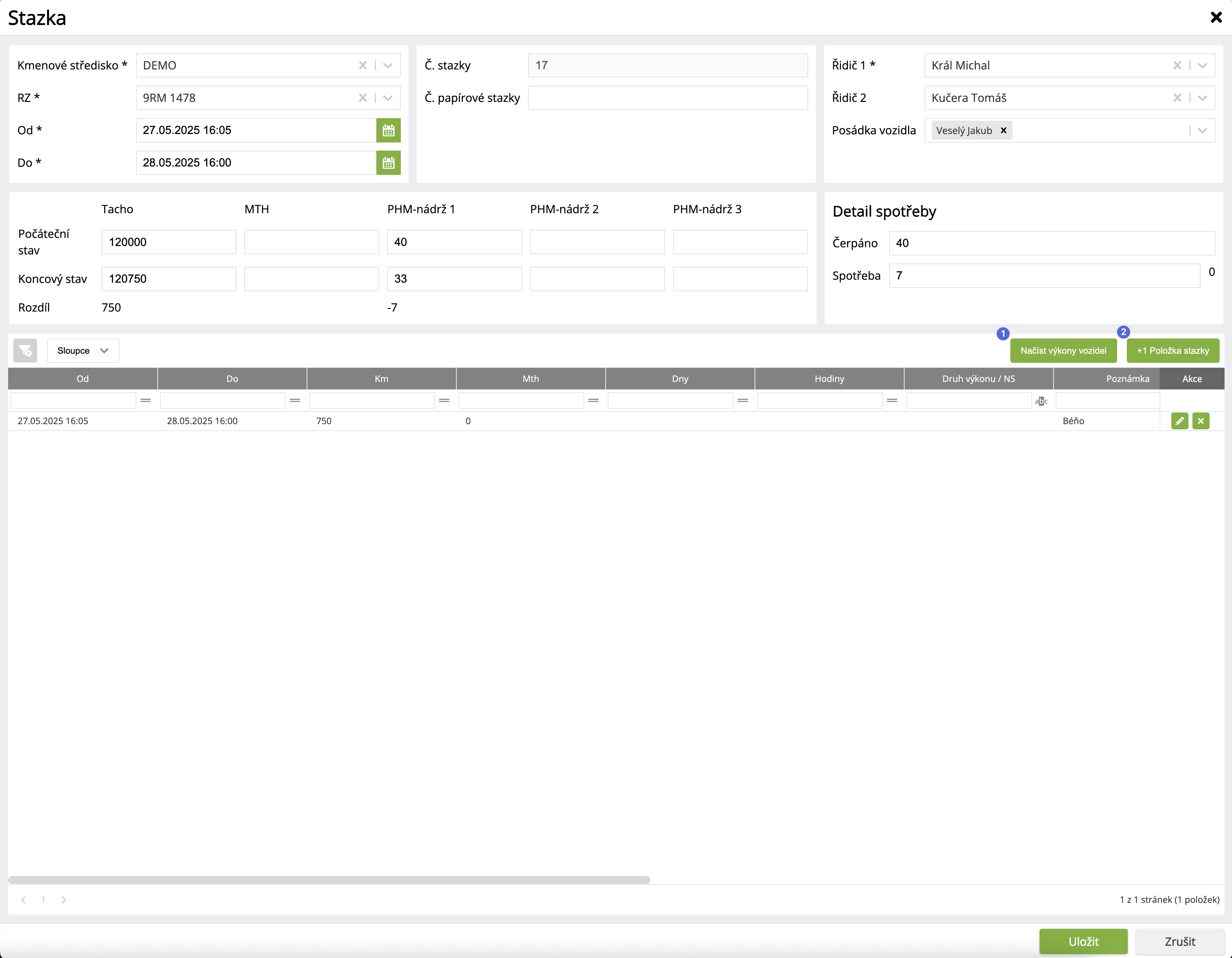 3. Uzavřením knihy jízd za konrétní vozidlo v modulu Kniha jízd se stazka automaticky vygeneruje