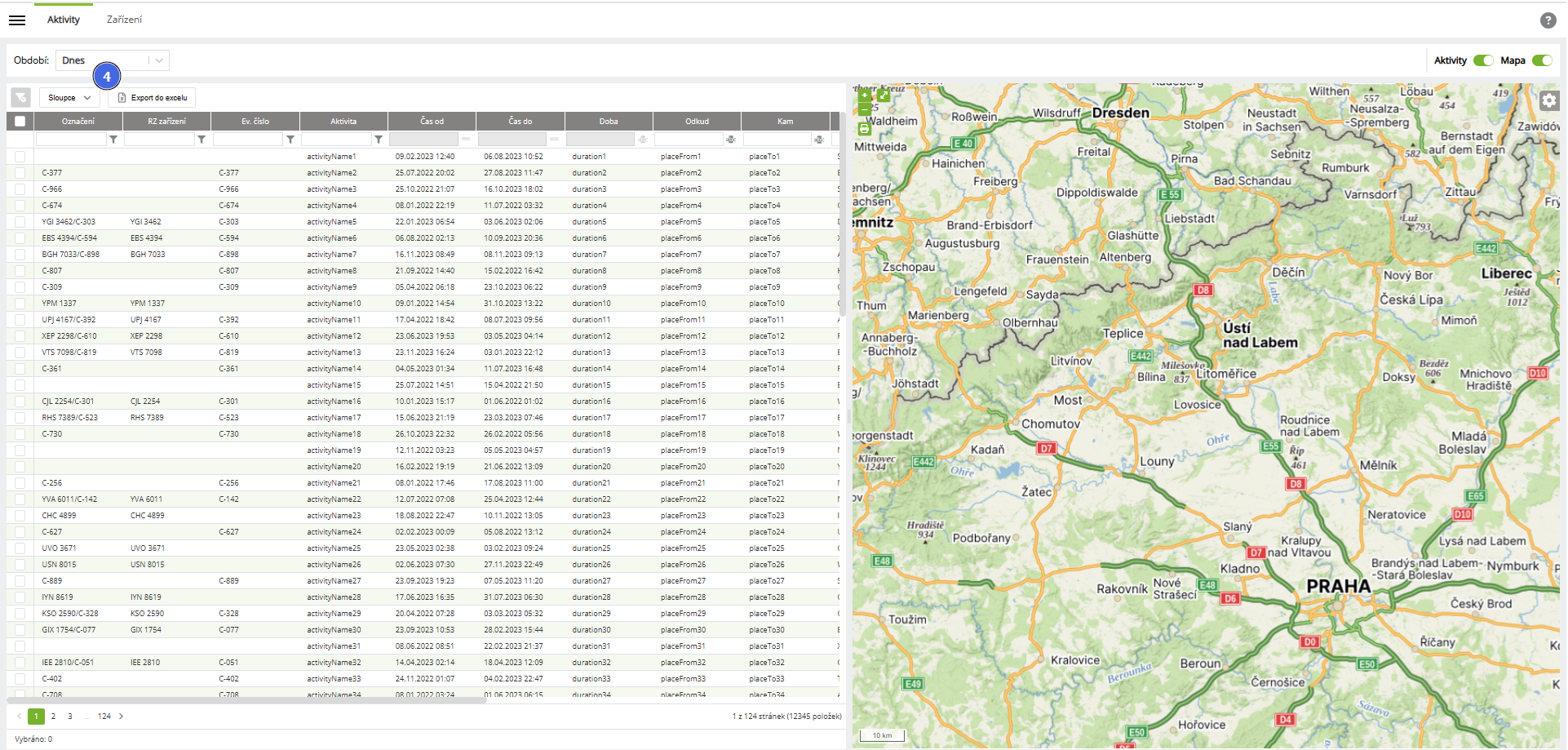 2. Tlačítko Export do Excelu (4) umožňuje stažení souboru s přehledem posledních aktivit všech zařízení