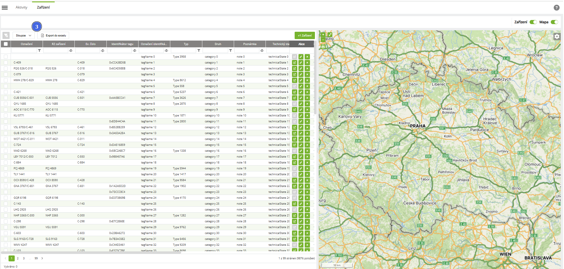 2. Tlačítko Export do Excelu (3) umožňuje stažení souboru s přehledem všech zařízení